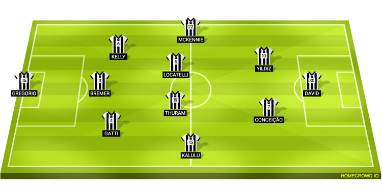 Probable Lineup (3-4-2-1): Di Gregorio; Gatti, Bremer, Kelly; Kalulu, Thuram, Locatelli, McKennie; Conceicao, Yildiz; David