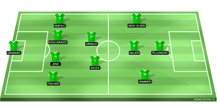Probable Lineup (4-2-3-1): Grabara, Fischer, Mæhle, Jenz, Koulierakis, Arnold, Souza, Skov Olsen, Wimmer, Majer, Pejcinovic