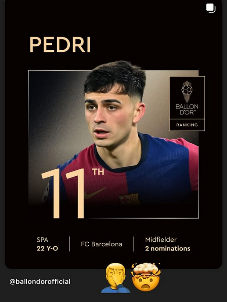 Raphinha was the second ranked of the four Barcelona nominees, coming in 5th behind Lamine Yamal in 2nd. Pedri narrowly missed out on the top 10, coming 11th, and Robert Lewandowski finished 17th. Teammate Ferran Torres posted a picture on his Instagram story of Pedri’s ranking with a face-palm emoji, and an exploding head emoji, a clear sign of his surprise at the decision.