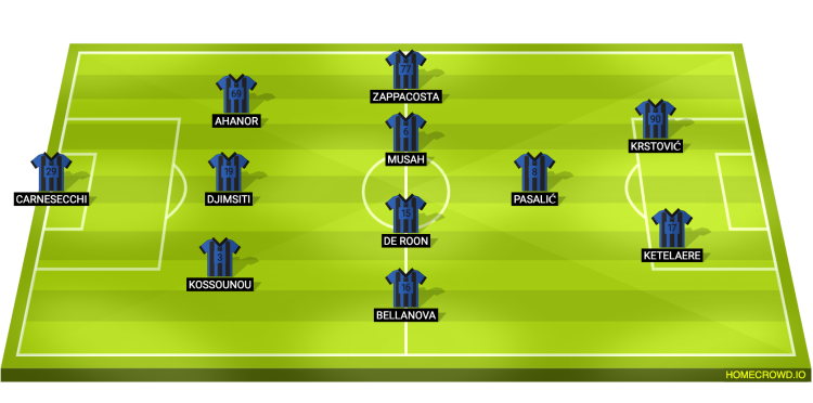 Probable Lineup (3-4-1-2): Carnesecchi; Kossounou, Djimsiti, Ahanor; Bellanova, De Roon, Musah, Zappacosta; Pasalic; De Ketelaere, Krstovic