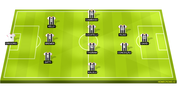 Probable Lineup (3-4-2-1): Di Gregorio; Gatti, Bremer, Kelly; Kalulu, Thuram, Locatelli, Cambiaso; Conceicao, Yildiz; David
