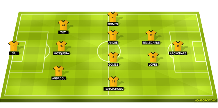 Andre and Joao Gomes are expected to start in midfield, while Pereira will persist with a back three of Yerson Mosquera, Emmanuel Agbadou and Toti Gomes. Jackson Tchatchoua and Rodrigo Gomes are likely to take the wing-back roles, while Fer Lopez and Jean-Richer Bellegarde are set to play behind Arokodare.