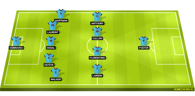 Probable Lineup (5-4-1): Dubravka; Walker, Esteve, Ekdal, Laurent, Hartman; Larsen, Florentino, Cullen, Anthony; Foster