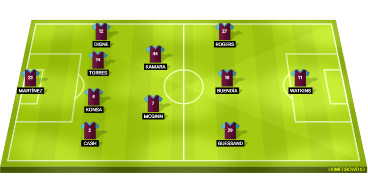 Probable Lineup (4-2-3-1): Bizot; Cash, Konsa, Torres, Digne; McGinn, Kamara; Guessand, Buendia, Rogers; Watkins