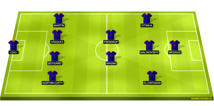 Probable Lineup (4-2-3-1): Leali; Norton-Cuffy, Ostigard, Vasquez, Martin; Masini, Frendrup; Ellertsson, Malinovskyi, Vitinha; Colombo