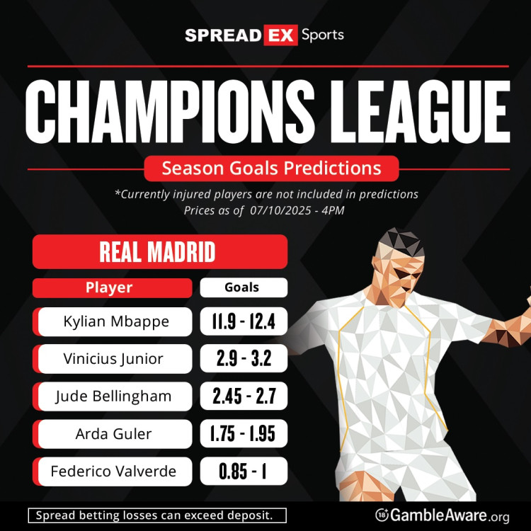 Hie form has impressed bookmakers and Spreadex have tipped him to hit a mark of 11.9 to 12.4 goals in their season goals predictions for the Champions League.