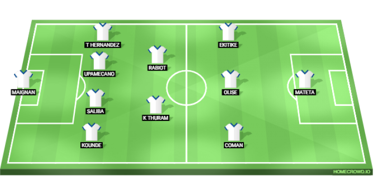 Probable Lineup (4-2-3-1): Maignan; Kounde, Saliba, Upamecano, Theo Hernandez; Khephren Thuram, Rabiot; Coman, Olise, Ekitike; Mateta