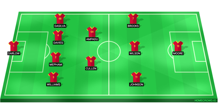 As for the midfield unit, Ethan Ampadu will add physicality and defensive cover alongside Josh Cullen in the middle of the park. Harry Wilson will reprise the no. 10 role. He will look to create opportunities for his teammates and find the back of the net here.