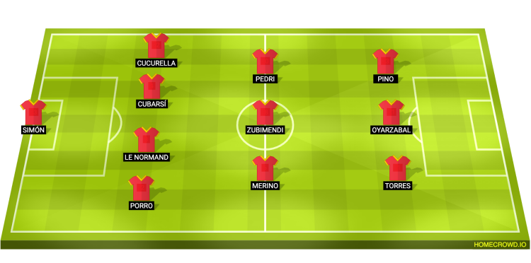 Probable Lineup (4-3-3): Simon; Porro, Le Normand, Cubarsi, Cucurella; Merino, Zubimendi, Pedri, Torres, Oyarzabal, Pino