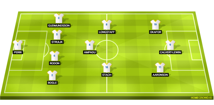 Probable Lineup (4-3-3): Perri; Bogle, Rodon, Struijk, Gudmundsson; Stach, Ampadu, Longstaff; Aaronson, Calvert-Lewin, Okafor