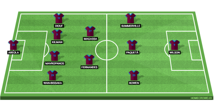 Probable Lineup (4-2-3-1): Areola; Wan-Bissaka, Mavropanos, Kilman, Diouf; Fernandes, Magassa; Bowen, Paqueta, Summerville; Wilson