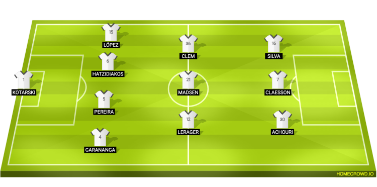 Mads Emil Madsen will sit at the base of Copenhagen’s midfield, with Lukas Lerager and William Clem on either side of him. Viktor Claesson will lead the line, with Elias Achouri and Robert Silva completing the front three setup.