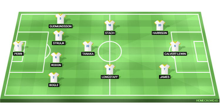 Probable Lineup (4-3-3): Perri; Bogle, Rodon, Struijk, Gudmundsson; Longstaff, Tanaka, Stach; James, Calvert-Lewin, Harrison