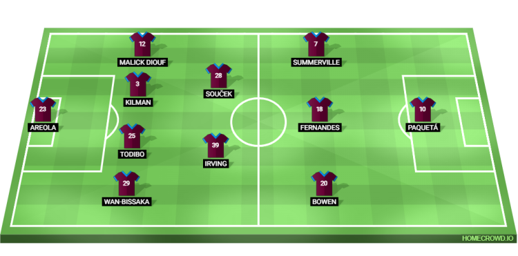 Probable Lineup (4-2-3-1): Areola; Wan-Bissaka, Todibo, Kilman, Diouf; Irving, Soucek; Bowen, Mateus Fernandes, Summerville; Paqueta