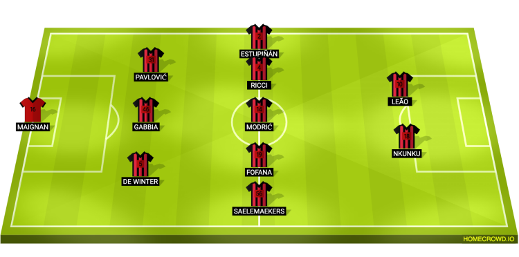 Probable Lineup (3-5-2): Maignan; De Winter, Gabbia, Pavlovic; Saelemaekers, Fofana, Modric, Ricci, Estupinan; Nkunku, Leao