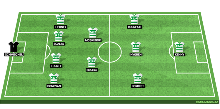 Probable Lineup (4-2-3-1): Schmeichel; Donovan, Trusty, Scales, Tierney; Engels, McGregor; Forrest, Nygren, Tounekti; Kenny