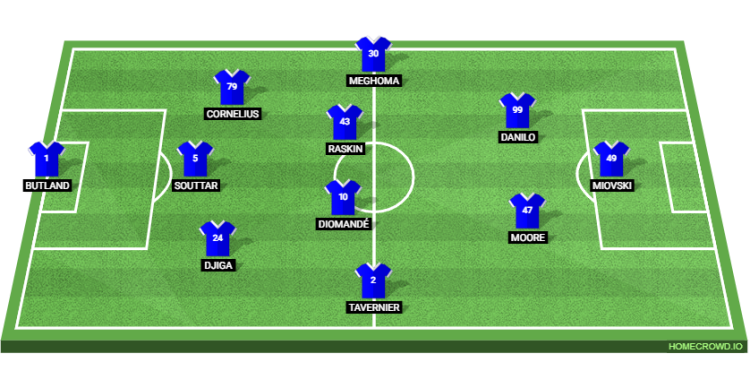 Probable Lineup (3-4-2-1): Butland; Djiga, Souttar, Cornelius; Tavernier, Diomande, Raskin, Meghoma; Moore, Danilo; Miovski