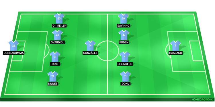 Probable Lineup (4-1-4-1): Donnarumma; Nunes, Dias, Gvardiol, O’Reilly; Gonzalez; Doku, Reijnders, Foden, Savinho; Haaland