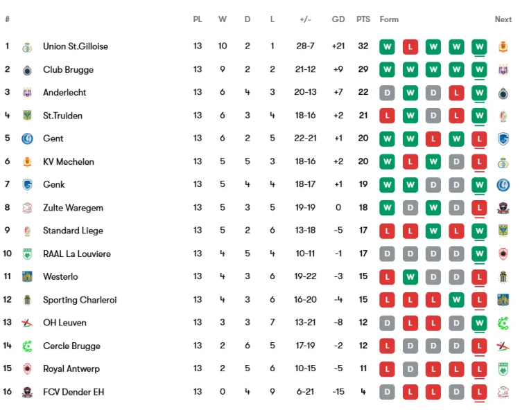 ‘It can’ Mick McCarthy once said when asked if Ipswich’s poor run of form could ‘go on like this’. The same can now be said of Dender, as after 13 Pro League matches they are still seeking that first win. Here is our review of round 13 in the Belgian Pro League.