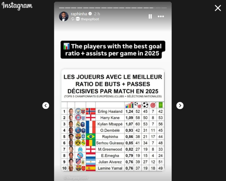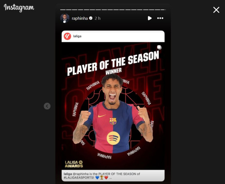 A selection that did not go down well with Raphinha. The 28-year-old posted a series of 18 images and videos on his Instagram story, which enumerated his achievements and performances last season.