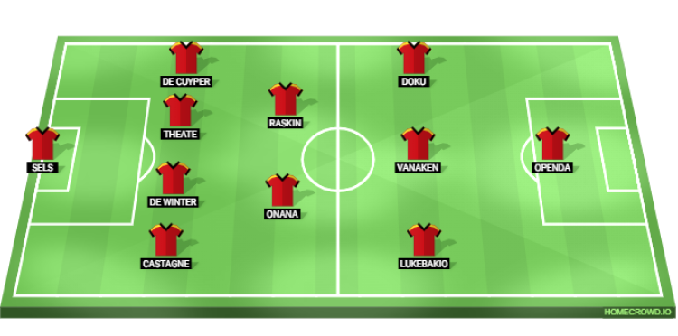 Probable Lineup (4-3-3): Sels; Castagne, De Winter, Theate, De Cuyper; Onana, Raskin; Lukebakio, Vanaken, Doku; Openda