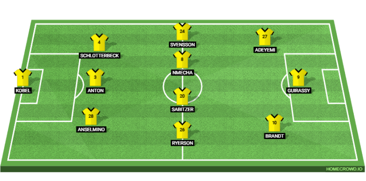 Probable Lineup (3-4-2-1): Kobel; Anselmino, Anton, Schlotterbeck; Ryerson, Sabitzer, Nmecha, Svensson; Brandt, Adeyemi; Guirassy