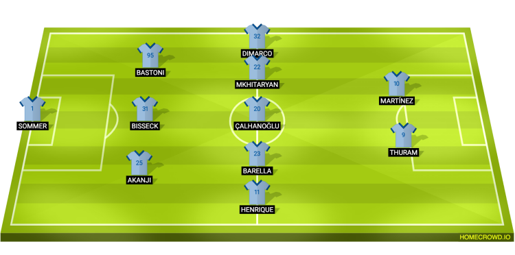 Probable Lineup (3-5-2): Sommer; Akanji, Bisseck, Bastoni; Henrique, Barella, Calhanoglu, Mkhitaryan, Dimarco; Thuram, Martinez