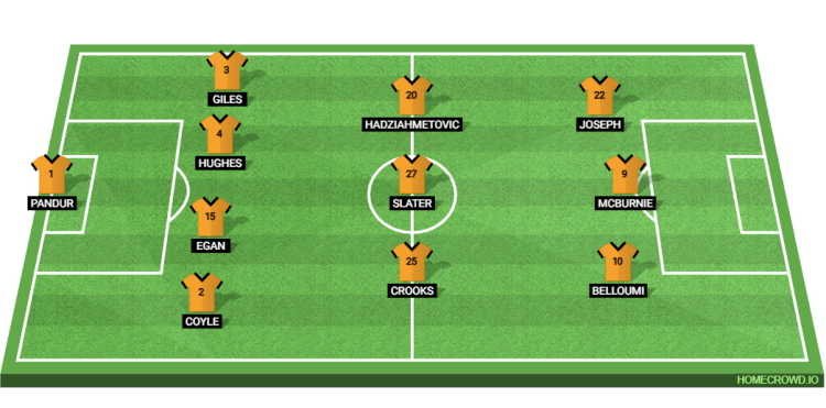 Probable Lineup (4-3-3): Pandur; Coyle, Egan, Hughes, Giles; Crooks, Slater, Hadziahmetovic; Belloumi, McBurnie, Joseph
