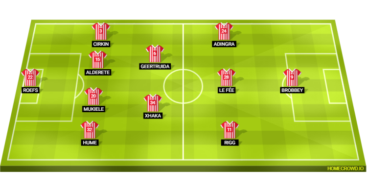 As for the midifeld unit, Lutsharel Geertruida will line up alongside Granit Xhaka in the double pivot, with Enzo Le Fee reprising the no. 10 role. Finally, Brian Brobbey will lead the line for Sunderland, with Chris Rigg and Simon Adingra being the two wide attackers.