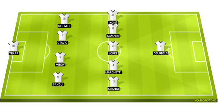 Probable Lineup (4-5-1): Trapp; Sangui; Mbow, Otavio, Smet; Cafaro, Marchetti, Lopez, Camara, Ikone; Geubbels