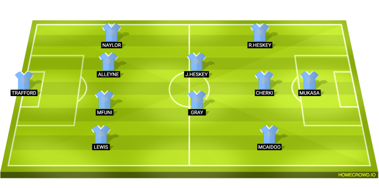Probable Lineup (4-2-3-1): Trafford; Lewis, Mfuni, Alleyne, Naylor; Gray, Jaden Heskey; McAidoo, Cherki, Reigan Heskey; Mukasa
