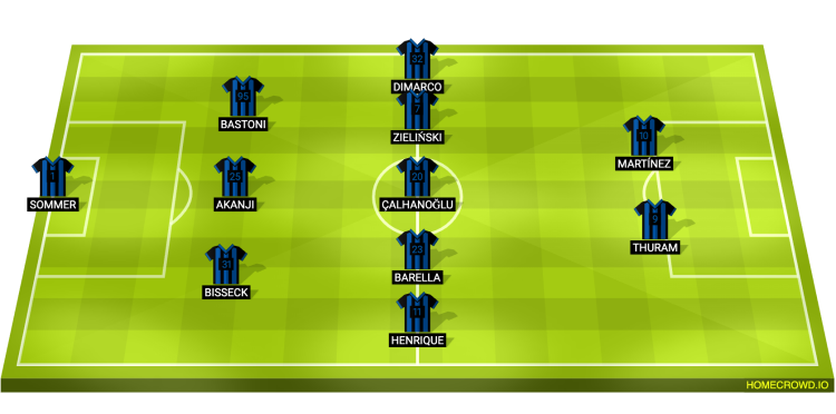 Probable Lineup (3-5-2): Sommer; Bisseck, Akanji, Bastoni; Henrique, Barella, Calhanoglu, Zielinski, Dimarco; Thuram, Martinez