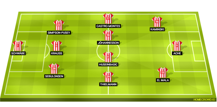 Probable Lineup (3-4-3): Schwabe; Sebulonsen, Krauss, Simpson-Pusey; Thielmann, Huseinbasic, Johannesson, Castro-Montes; El Mala, Ache, Kaminski
