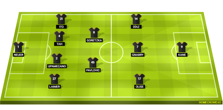 Probable Lineup (4-2-3-1): Neuer; Laimer, Upamecano, Tah, Ito; Pavlovic, Goretzka; Olise, Gnabry, Diaz; Kane