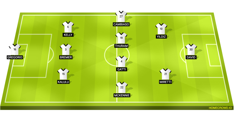 Probable Lineup (3-4-2-1): Di Gregorio; Kalulu, Bremer, Kelly; McKennie, Locatelli, Thuram, Cambiaso; Miretti, Yildiz; David