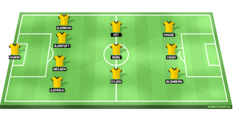Probable Lineup (4-3-3): Haikin; Sjovold, Nielsen, Bjortuft, Bjorkan; Evjen, Berg, Fet; Blomberg, Hogh, Hauge