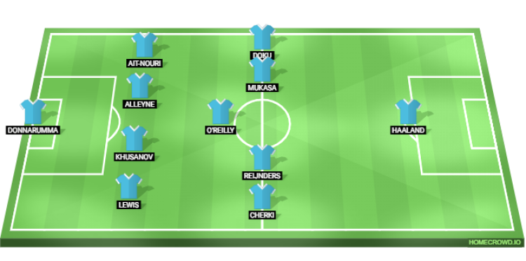 Probable Lineup (4-5-1): Donnarumma; Lewis, Khusanov, Alleyne, Ait-Nouri; Cherki, Reijnders, O’Reilly, Mukasa, Doku; Haaland