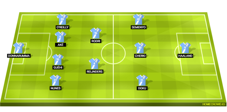 Probable Lineup (4-2-3-1): Donnarumma; Nunes, Guehi, Ake, O’Reilly; Reijnders, Rodri; Doku, Cherki, Semenyo; Haaland