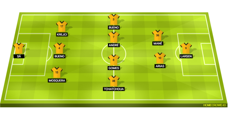 Probable Lineup (3-4-2-1): Sa; Mosquera, Santiago Bueno, Krejci; Tchatchoua, Joao Gomes, Andre, Hugo Bueno; Arias, Mane; Strand Larsen