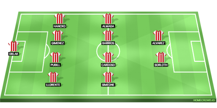 Probable Lineup (4-4-2): Oblak; Llorente, Pubill, Gimenez, Hancko; Simeone, Cardoso, Barrios, Almada; Sorloth, Alvarez