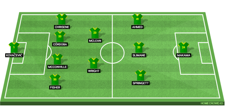 bable Lineup (4-2-3-1): Kovacevic; Fisher, McConville, Cordoba, Chrisene; Wright, McLean; Springett, Slimane, Ahmed; Makama