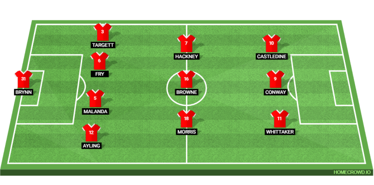 Probable Lineup (4-3-3): Brynn; Ayling, Malanda, Fry, Targett; Morris, Browne, Hackney; Whittaker, Conway, Castledine
