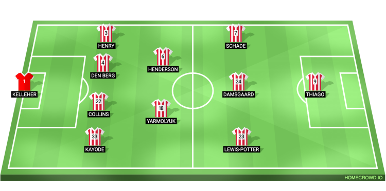 Probable Lineup (4-2-3-1): Kelleher; Kayode, Collins, van den Berg, Henry; Yarmolyuk, Henderson; Lewis-Potter, Damsgaard, Schade; Thiago
