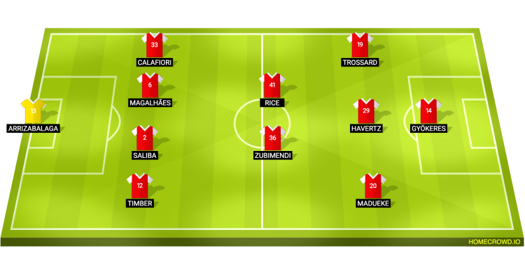 Probable Lineup (4-2-3-1): Kepa; White, Saliba, Gabriel, Calafiori; Zubimendi, Rice; Madueke, Havertz, Trossard; Gyokeres