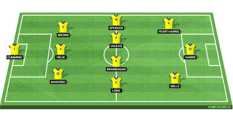 Probable Lineup (3-4-3): Cumming; Makosso, Helik, Brown; Long, Brannagan, Vaulks, Spencer; Mills, Harris, Peart-Harris
