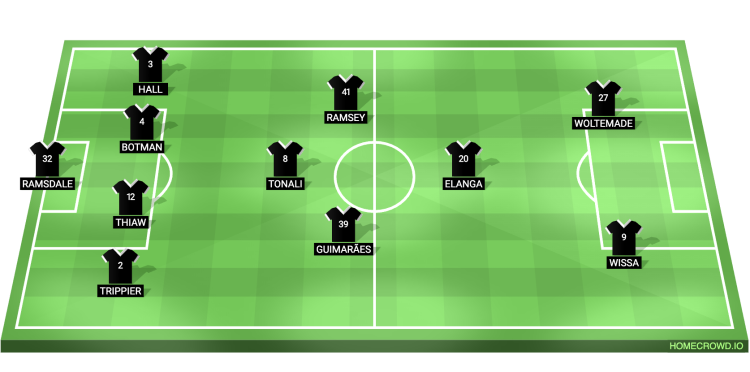 Probable Lineup (4-3-1-2): Ramsdale; Trippier, Botman, Thiaw, Hall; Bruno, Tonali, Ramsey; Elanga; Wissa, Woltemade