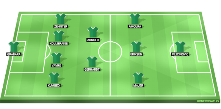 Probable Lineup (4-2-3-1): Grabara; Kumbedi, Vavro, Koulierakis, Zehnter; Gerhardt, Arnold; Majer, Eriksen, Amoura; Pejcinovic