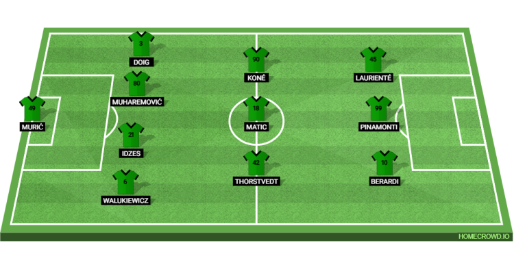 Probable Lineup (4-3-3): Muric; Walukiewicz, Idzes, Muharemovic, Doig; Thorstvedt, Matic, Kone; Berardi, Pinamonti, Lauriente