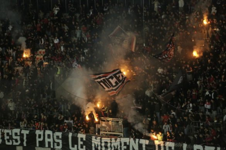 A Mario themed tifo from the Nice fans in the Côte d’Azur derby.