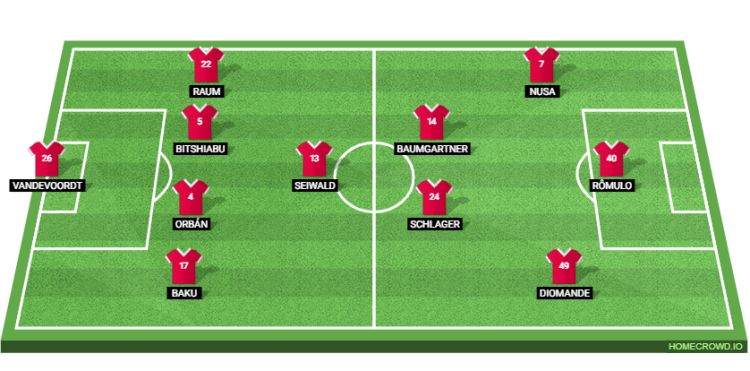 Probable Lineup (4-1-2-3): Vandevoordt; Ridle Baku, Orban, Bitshiabu, Raum; Seiwald; Schlager, Baumgartner; Diomande, Romulo, Nusa